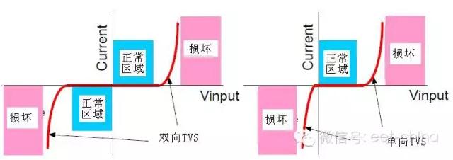 單向TVS和就特性而言和齊納管較類似,只能吸收正向的浪涌電壓脈沖,一般只用于直流電路(且沒(méi)有反接和負(fù)向脈沖)。