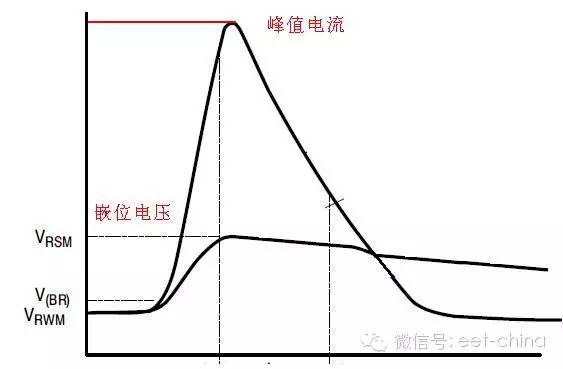 TVS保護(hù)電路過(guò)程中,在規(guī)定的反向電流下,TVS兩端的電壓值稱為最大反向工作電壓VRWM。