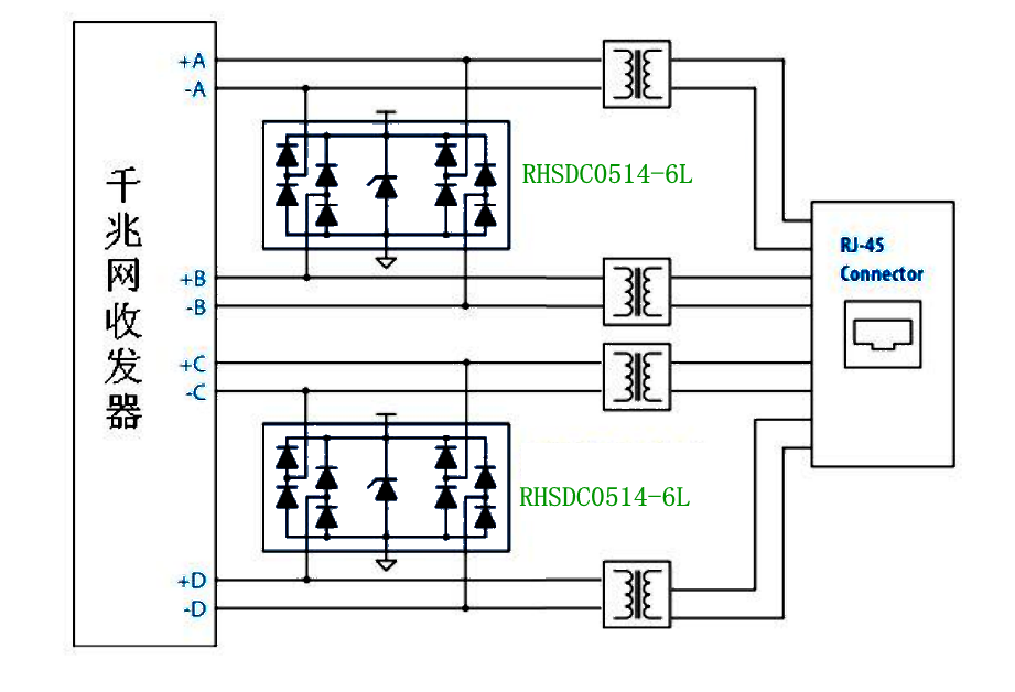1.變壓器后采用低電容、反應速度快的TVS做差模防護。